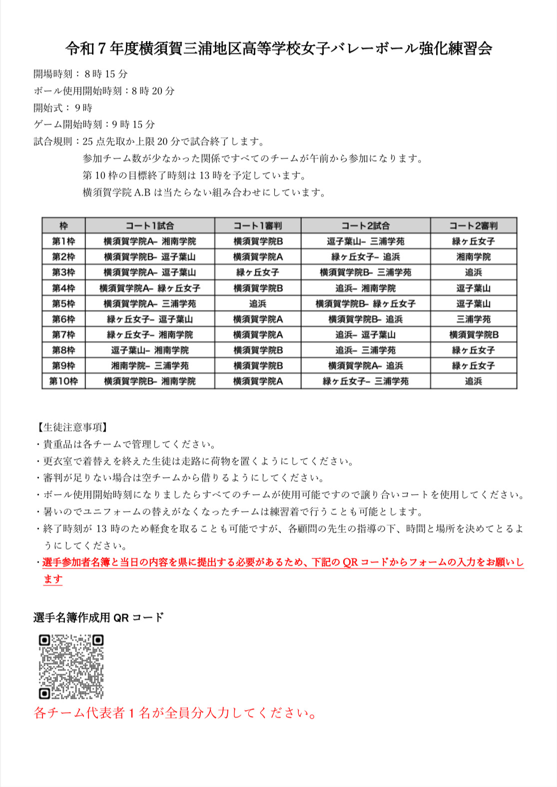 令和7年度 横三地区高等学校総合体育大会バレ-ボール(6人制)競技大会